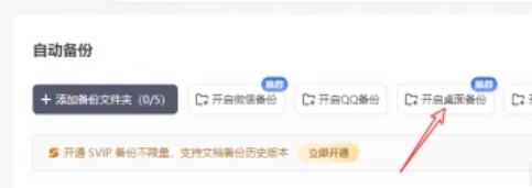 进入“自动备份”页面后,找到“打开桌面备份”选项。单击此选项,系统将提示您进行下一步。