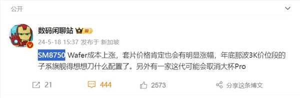 5月18日消息,博主数码闲聊站透露,台积电晶圆成本上涨,致使高通骁龙8 Gen4的套片价格涨幅明显,这势必会影响到终端品牌手机定价。