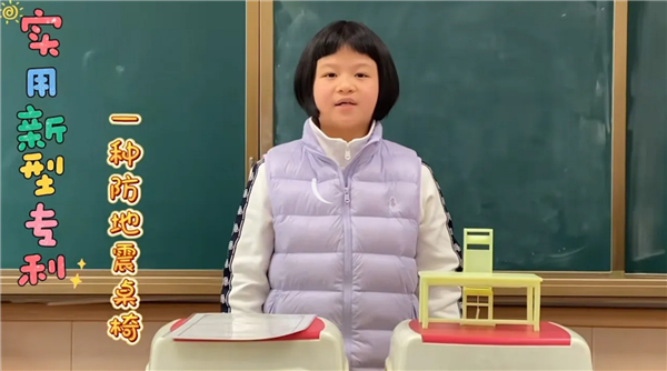 5月20日消息,近日,一9岁女孩在课堂上给同学和老师展示其发明的防地震桌椅。据悉,今年3月,这项发明获得国家专利。