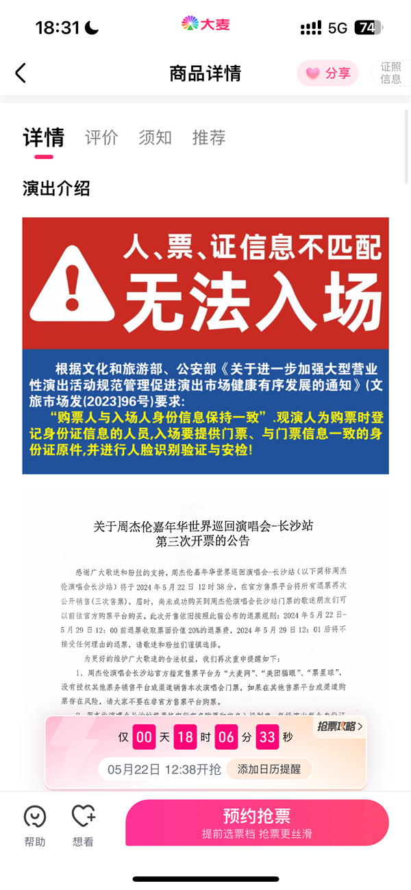 还有网友表示,有关部门实施强实名,按照规则来说这就是错票,是不允许进场的,所以大麦的做法也没毛病。