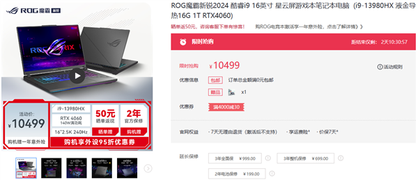随着618活动开启,华硕旗下多款游戏本开启优惠,比如配备Intel酷睿i9-13980HX旗舰处理器、RTX 4060显卡、16GB内存和1TB硬盘的人气电竞本ROG魔霸新锐2024,到手10499元。