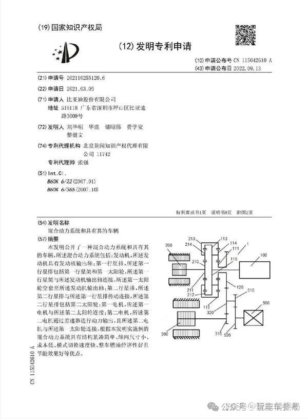 技术细节官方没展开说,但不久前比亚迪公开过一份混动系统专利,乘联会的研究报告,以及多方机构都认为这就是第五代DM-i系统: