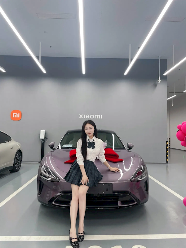 就在昨日,这位女孩分享了自己提车的照片,照片中她身着JK服装,与她的霞光紫色小米SU7合影留念。
