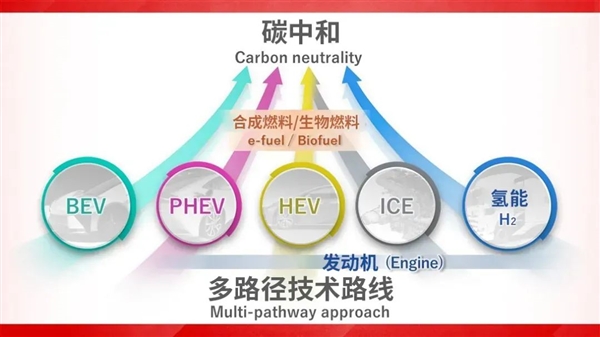 按照丰田的说法,要想实现碳中和,不一定非要纯电动化,还可以通过多种途径来解决,也就是提供一系列不同燃料动力系统的车辆来满足每个市场的不同需求。