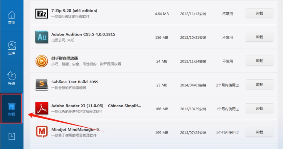 2、然后进入软件管理界面,找到您要卸载的软件,点击“卸载”选项。