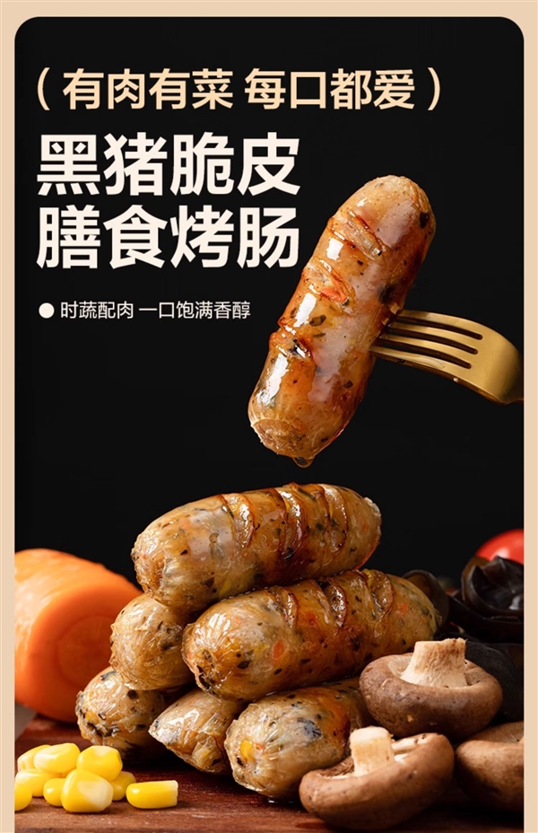 脆皮锁汁,一口鲜香四溢。不是单一的纯肉肠,添加5中菌菇+蔬菜,口感更丰富。