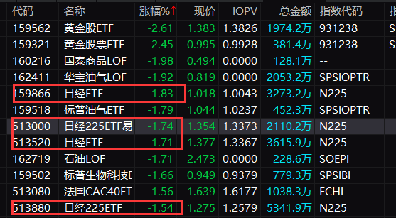 受到日本股市上午盘中大幅下跌的影响,多只追踪日本股市的跨境ETF今天上午大幅下跌,多只相关ETF盘中跌幅也一度超过2%。