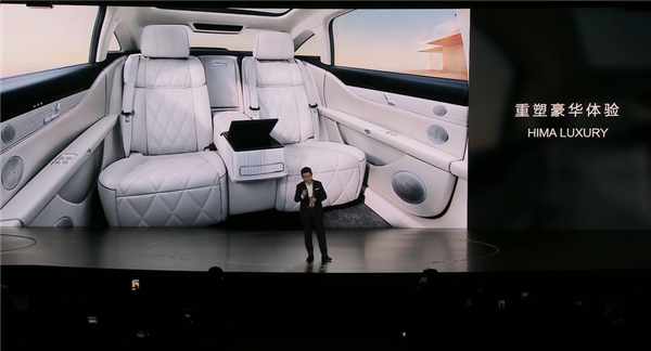 值得一提的是,该车号称全球量产行政豪华轿车最低风阻,至于多少,余承东表示将在8月份上市发布会上正式揭晓,与此同时,余承东还展示了这款车的后后排座椅,给人的第一感觉就是奢华,符合其身份定位。