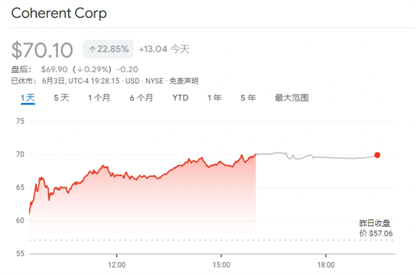 消息公布后,莱迪思半导体的股价在周一暴跌15.5%,创下八个月来的最大跌幅,而Coherent的股价则飙涨22.9%,迎来了自2020年5月以来表现最好的一天。