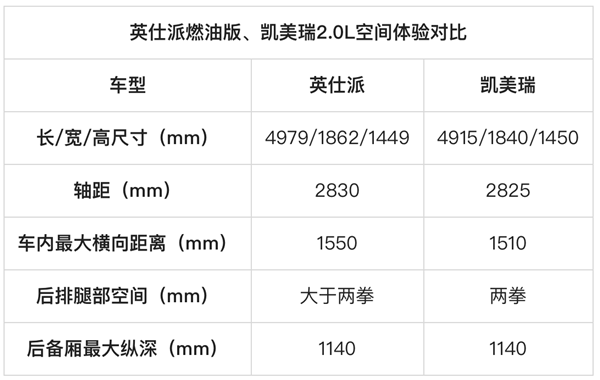 需要指出一点,英仕派燃油版虽然动力更强,但它的燃油效率同样很高。凯美瑞省油,英仕派燃油版也同样省油,并且由于性能更强,所以符合家用消费者的核心利益。