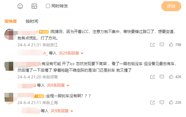 有网友看完详细报道指出,很有可能是因为开着LCC,注意力不够集中,发现快要错过路口,想要变道,于是动了方向盘导致车辆偏移路径和其他车辆碰撞,突发事故造成女司机更加慌乱,加上穿着拖鞋,没有及时踩刹车,最终酿成了事故。