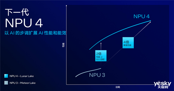 对比Meteor Lake的NPU 3,NPU 4拥有其4倍的峰值性能。