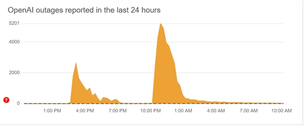 DownDetector显示过去24小时内网络上出现两轮OpenAI服务终端的报告高峰