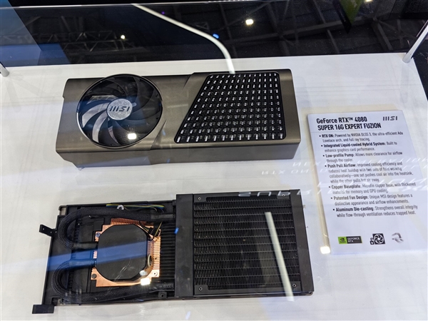 其中,RTX 4090 24G SUPRIM FUZION显卡为最新一体复合式水冷显卡,兼具空冷安装性与水冷散热表现,可满足使用者对高算力、高解热、高安装性以及优化AI应用体验的需求。