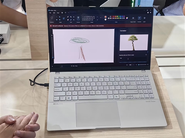 在现场演示中,用户仅需随手涂鸦,电脑就会自动处理补全,呈现出一颗参天大树,而且速度很快。