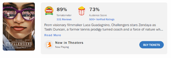 由赞达亚、乔希奥康纳和麦克费斯主演美国浪漫运动剧情片《挑战者》于4月26日在美国上映,烂番茄新鲜度89%,M站均分82。