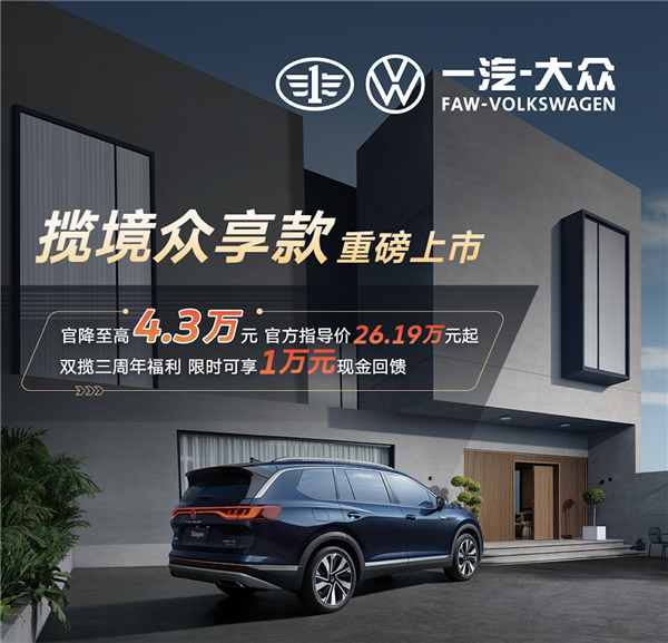 6月7日消息,一汽-大众揽境众享款车型已正式上市,提供6座和7座两种座椅布局,售价区间为26.19-36.19万元。