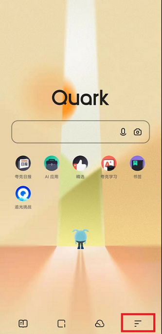 第一步:打开Quark浏览器,选择下面的三横杠标志。