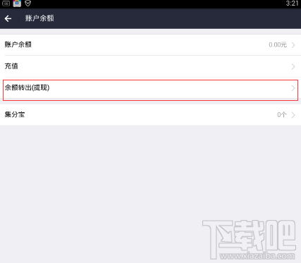 5.在账户余额界面找到“余额转出(支取)”直接点击;