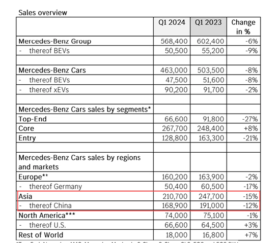 如果说梅赛德斯-奔驰2023年的日子还不算太难过,今年一季度,则迎来了苦日子。