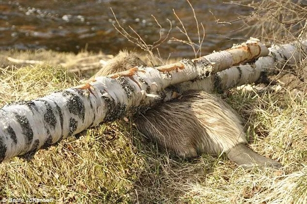 然而,伐木对于河狸来说也是一项高危工作,它们一不小心就会被树木压死,而且死的相当凄惨。
