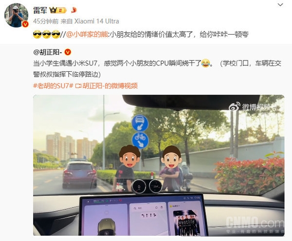 近日,有博主将自己的小米SU7停在路边,没想到被路过的两个小学生盯上了。两位小学生看见小米SU7后直接一顿爆夸。