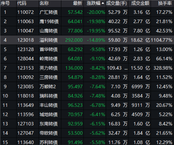 6月21日,广汇转债大跌20%,报收于57.542元,远远低于面值,在过去的一个月中,广汇转债累计跌幅已经高达42.6%。无独有偶,同日山鹰转债、鹰19转债等也大跌近20%。