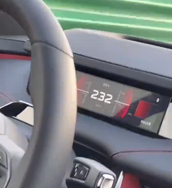 视频里可以看到,男子单手握着方向盘开始加速,从116km/h一路攀升,不到10秒车速就达到了200km/h,这还不算完,男子继续踩油门,最终峰值车速达到了232km/h。
