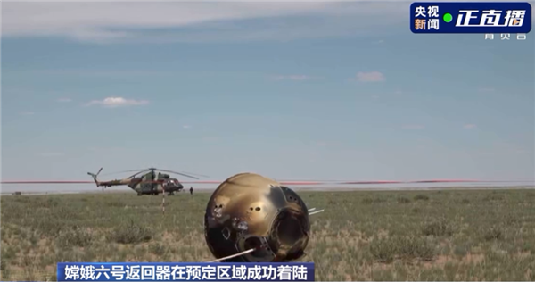 就在昨天中午 14 时07 分,带着两千克月背土壤的嫦娥六号,终于到家了,准确着陆到了内蒙古四子王旗预定区域!
