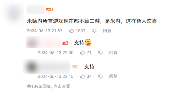 如此一来,慢慢就有米哈游玩家站出来。表示米哈游的游戏,现在都不算二游,严格来说是米游。大家分开来算,没必要互相比,皆大欢喜。