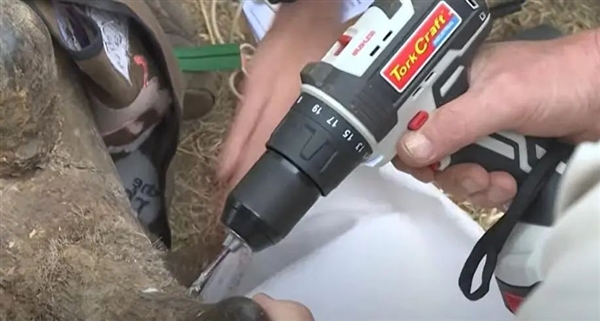 作为试点,第一批会有20头犀牛参与角的改造,工作人员选定犀牛后,对其进行麻醉,在犀牛麻醉期间,他们开始处理犀牛角。