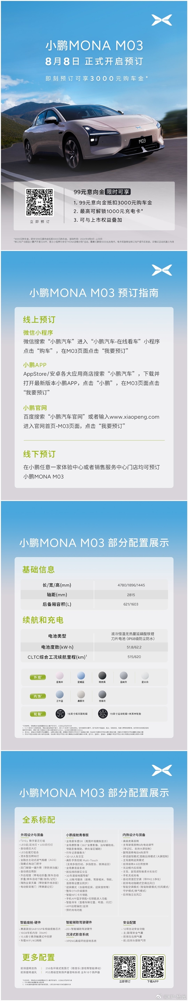 按照何小鹏的说法,M03是小鹏MONA系列的首款车型,是一辆属于年轻人的超有颜、超智能、超有实力智能纯电掀背轿跑。其能力对标20万级别车研发,价格将考虑年轻鹏友需求,各方面都诚意满满,在同档位有强大的竞争力。