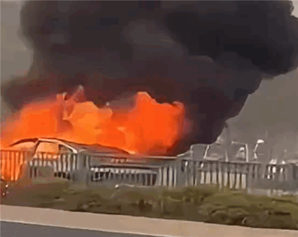 从现场网友拍摄的视频中可以听到,燃烧时还发出了爆燃声,后续消防人员赶到,将大火扑灭。