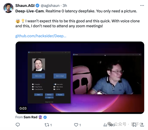 这个项目,叫做Deep-Live-Cam,无需专用硬件加速。