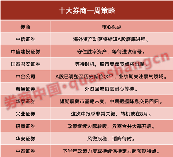 这次中报季非常关键。首先,往年财报季往往是风险偏好收缩的时段,但由于今年市场本身的风险偏好很低,导致业绩空窗期大家已经纳入充分的负面预期,所以财报季反而成为风险偏好修复的窗口。其次,财报季有望凝聚市场共识,形成带来赚钱效应的合力。最后,中报季有望迎来上市公司密集披露分红阶段,对股东回报的重视有望提振市场信心。