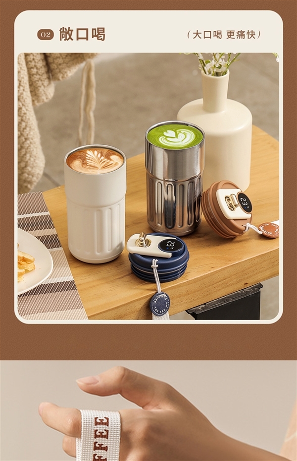 轻触显温,内置智能感温芯片,精准读数,喝水不烫嘴。