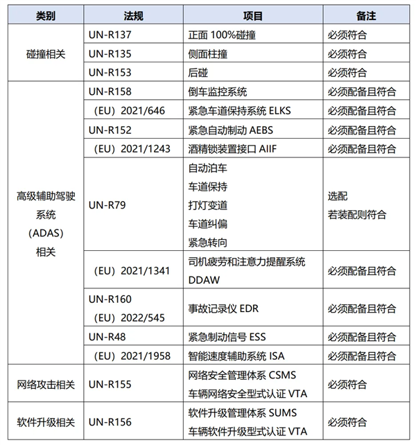 咨询了一位做过这个认证的车企人士小杨(化名),他告诉我欧州法规整体会超前 5 年以上,要求也更高,国内车企需要去针对性改动。