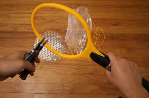 参考《生化危机》中的光网,其实和人类的苍蝇拍差不多,蚊子也很难躲开网格,所以干脆把家里的电蚊拍升级成「激光」板,初代蚊子激光杀手就这样敲定了。