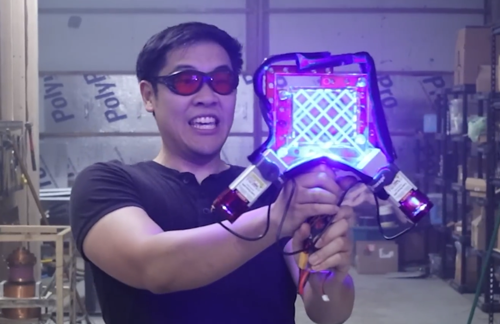 结果拉了,不仅网格没出来,而且激光乱射,蚊子打不到,但可以打自己,他的裤子都被烧穿了。