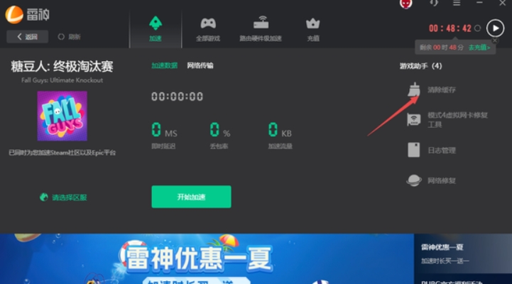 雷神加速器怎么清理游戏缓存_雷神加速器缓存清除教程分享,第一步,在电脑上启动该软件,然后登录您的帐户,然后在主界面或游戏界面上选择您要清除缓存的游戏。