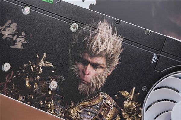 该显卡外观基于影驰20周年款打造,并结合了《黑神话:悟空》的游戏元素,在正面与背板进行了定制,雕琢出天命人的印记。