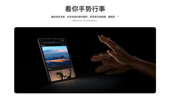 另外,华为在Mate X5上还进一步革新了其首创的隔空手势操作,支持内外双屏的隔空操作。当用户浏览短视频或新闻时,无需触碰屏幕,仅需简单的上下滑动手势,即可实现对手机的隔空操控。