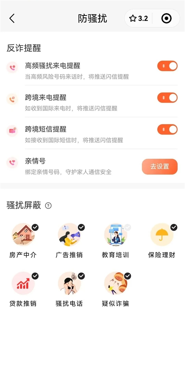 亲情号功能一键绑定家人号码,加固家庭通信防线。