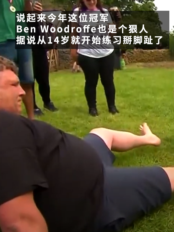 其实今年的冠军Ben Woodroffe也是个狠人,他今年34岁,是个铁路工人,据说从14岁就开始专门练习掰脚趾。老哥说自己不擅长运动,但这项坐着的运动貌似是个例外,他训练得极为刻苦,脚趾几次骨折都不放弃,甚至还移除了自己的指甲,听着太凶狠了。
