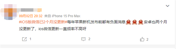 据了解,此前网上有消息传出微信可能不支持iPhone 16传言,并且还有网友发现,微信iOS版已有两个月没更新了,于是更担心起苹果和腾讯关系。