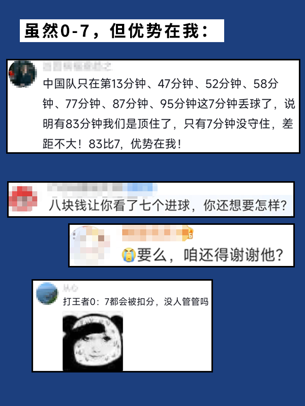 不过看再多吐槽也只能算是苦中作乐,还是期待国足能有点进步取得一些好成绩啊!希望后面能重振旗鼓吧。