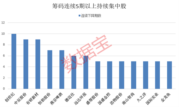 股东户数连续下降个股中,连降时间较长的有创世纪、中辰股份等。其中,创世纪最新股东户数为77429户,已连续减少10期,累计降幅为11.14%;中辰股份最新户数为22453户,股东户数连降9期,累计降幅22.33%。股东户数连降期数较多的还包括有研新材、燕京啤酒等。