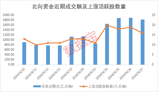 据数据宝统计,9月24日至27日,北向资金日均成交金额高达1815.83亿元,其中26日成交额超过1900亿元,创近四年多以来单日最高水平;然而9月1日至9月23日,北向资金日均成交金额为934.51亿元。