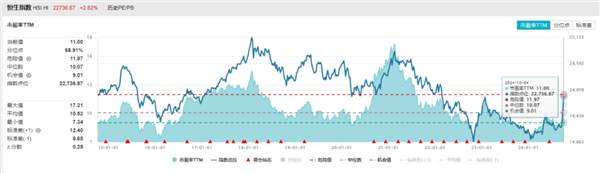 数据显示,恒生指数最新市盈率为11倍,略高于过去10年10.07倍的估值中位数,不及危险值11.97倍。恒生科技指数最新PE为29倍,不及过去10年36.11倍的中位数以及危险值的44.35倍。