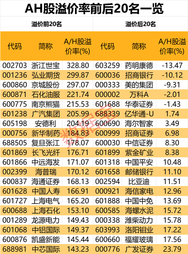 从个股来看,浙江世宝、弘业期货、京城股份最新AH股价格比分别为4.29倍、4倍、3.97倍,而该数据在9月30日为6.69倍、5.58倍和4.49倍。